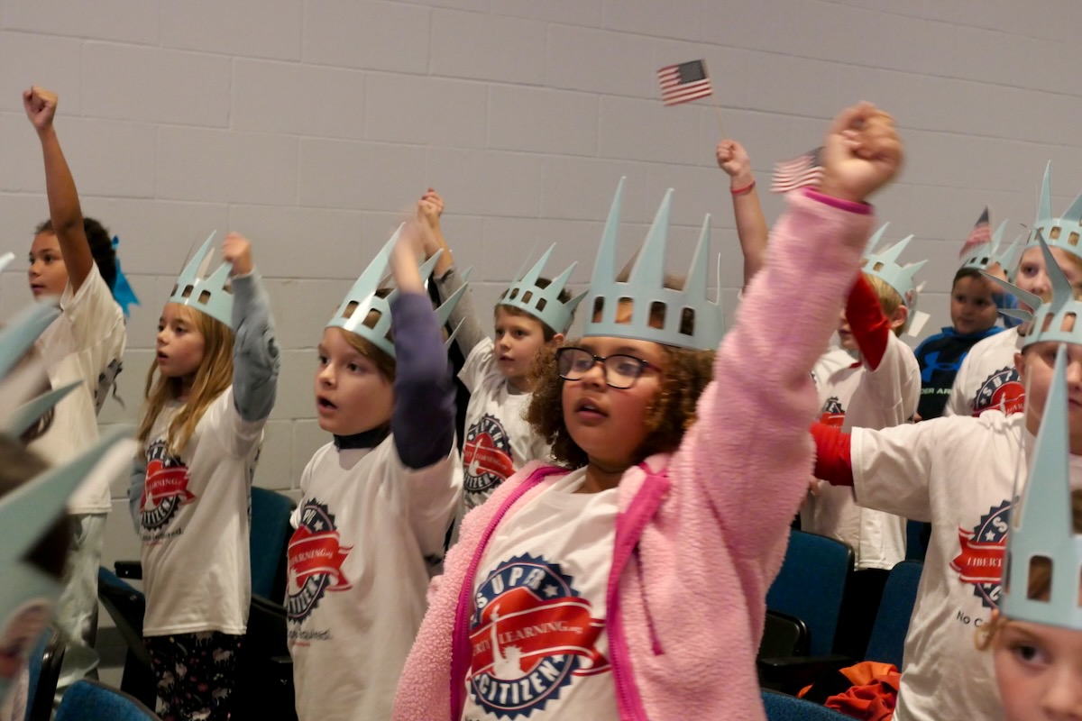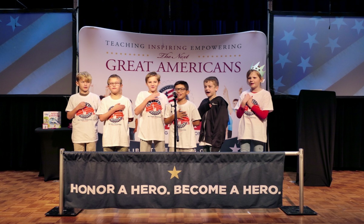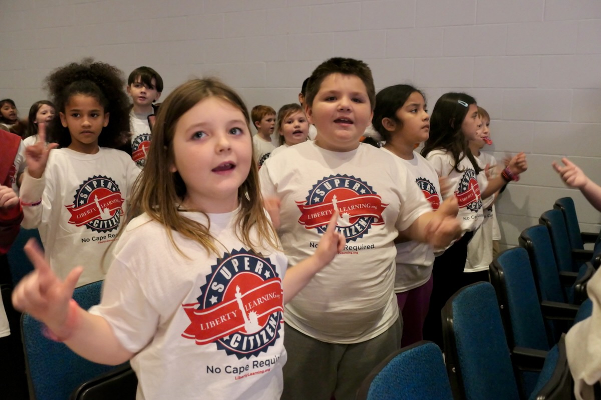 Students chose heroes who embodied the traits of amazing citizens and read essays from stage before presenting them with Liberty Pins. They learned that “when you honor a hero, you become a hero!”