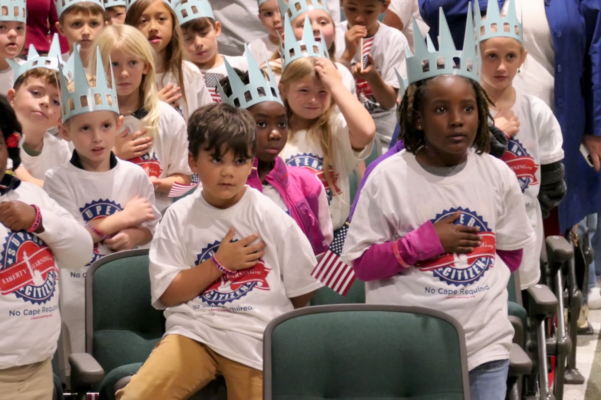 Students chose heroes who embodied the traits of amazing citizens and read essays from stage before presenting them with Liberty Pins. They learned that “when you honor a hero, you become a hero!”