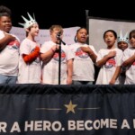 Students chose heroes who embodied the traits of amazing citizens and read essays from stage before presenting them with Liberty Pins. They learned that “when you honor a hero, you become a hero!”