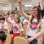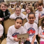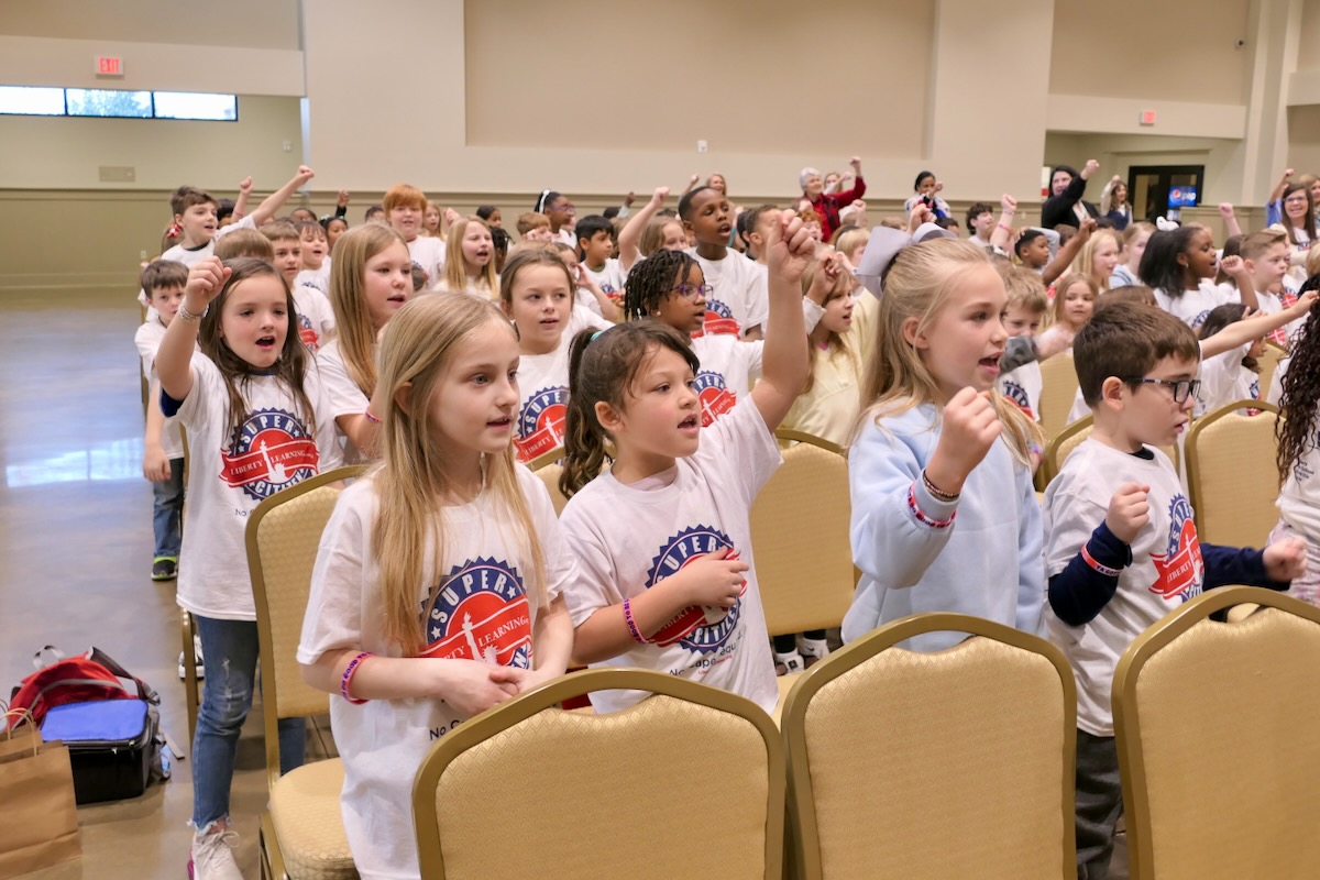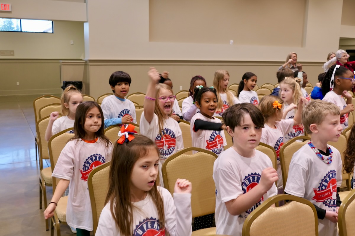 Today, 2nd graders from Helena Elementary & Vincent Elementary Schools filled the Shelby County Arts Council Auditorium. After finishing 10 weeks in the Hands of Liberty Program, they are gathered to celebrate their accomplishments and honor local heroes from the stage.