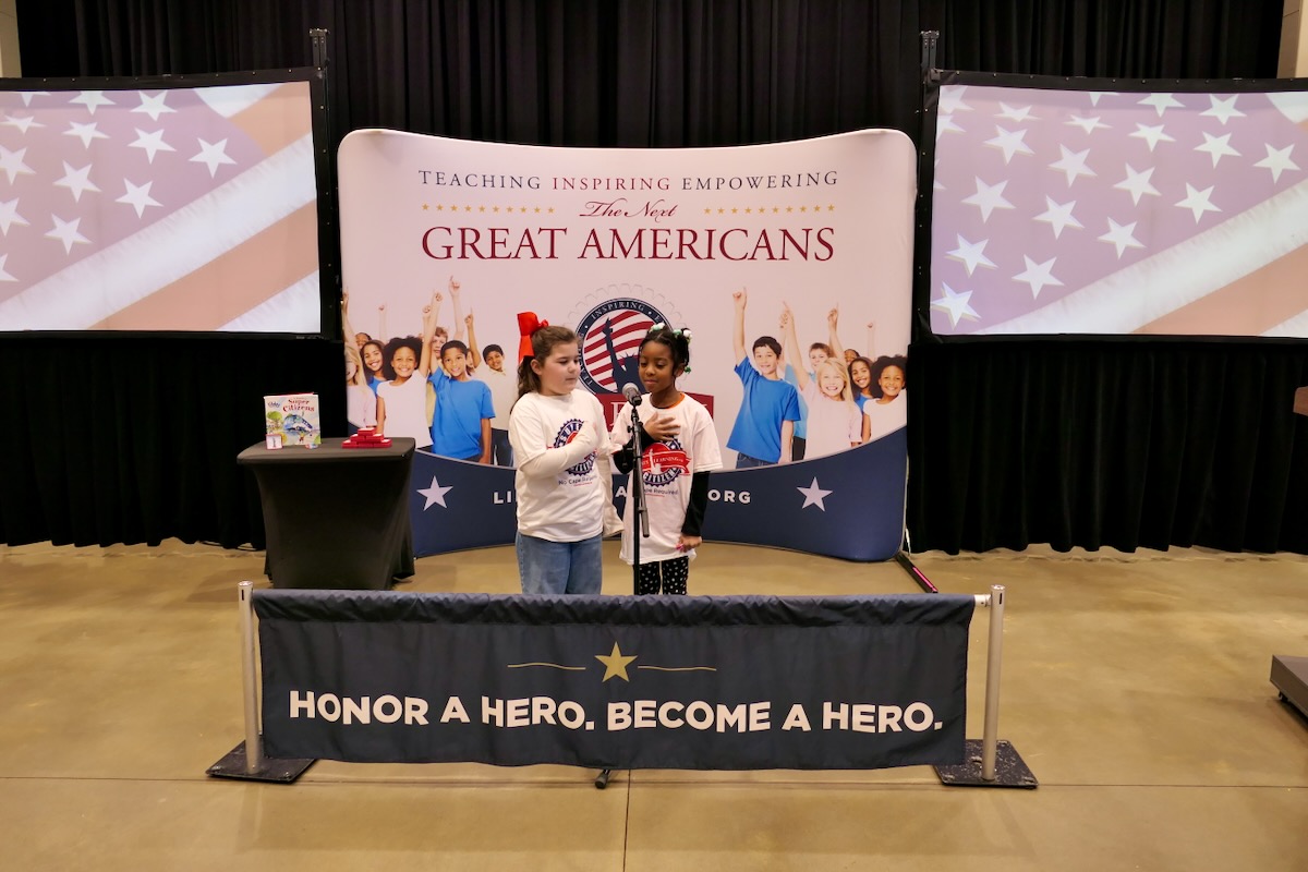 Students chose heroes who embodied the traits of amazing citizens and read essays from stage before presenting them with Liberty Pins. They learned that “when you honor a hero, you become a hero!”