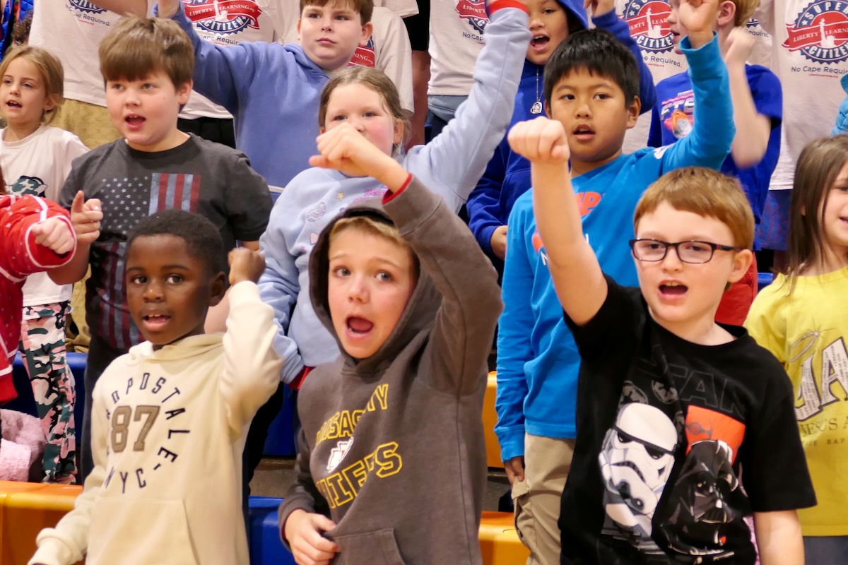 Today, Kinston, New Brockton, Zion Chapel Elementary students filled the Kinston High School Gymnasium. After finishing 10 weeks in the Super Citizen Program, they are gathered to celebrate their accomplishments and honor local heroes from the stage.