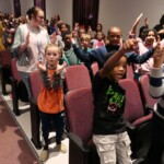 Today, 2nd & 5th graders from Lincoln Elementary, Munford Elementary, & Stemley Road Elementary filled the McFarlane Auditorium. After finishing 10 weeks in the Super Citizen Program, they are gathered to celebrate their accomplishments and honor local heroes from the stage.