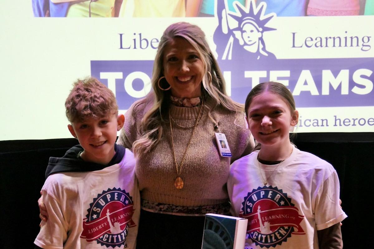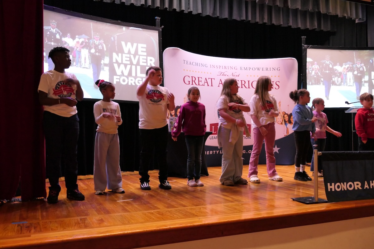 These students have learned their important roles in America’s future thanks to an immersive experience in civics, character, financial literacy and social studies. And in the closing piece of the program, Torch Teams (or “Helping Hands” for the younger students), students are applying those crucial lessons in the real world. They chose heroes who embodied the traits of amazing citizens and read essays from stage before presenting them with an Authentic Liberty Replicas & Liberty Pins. They learned that “when you honor a hero, you become a hero!”