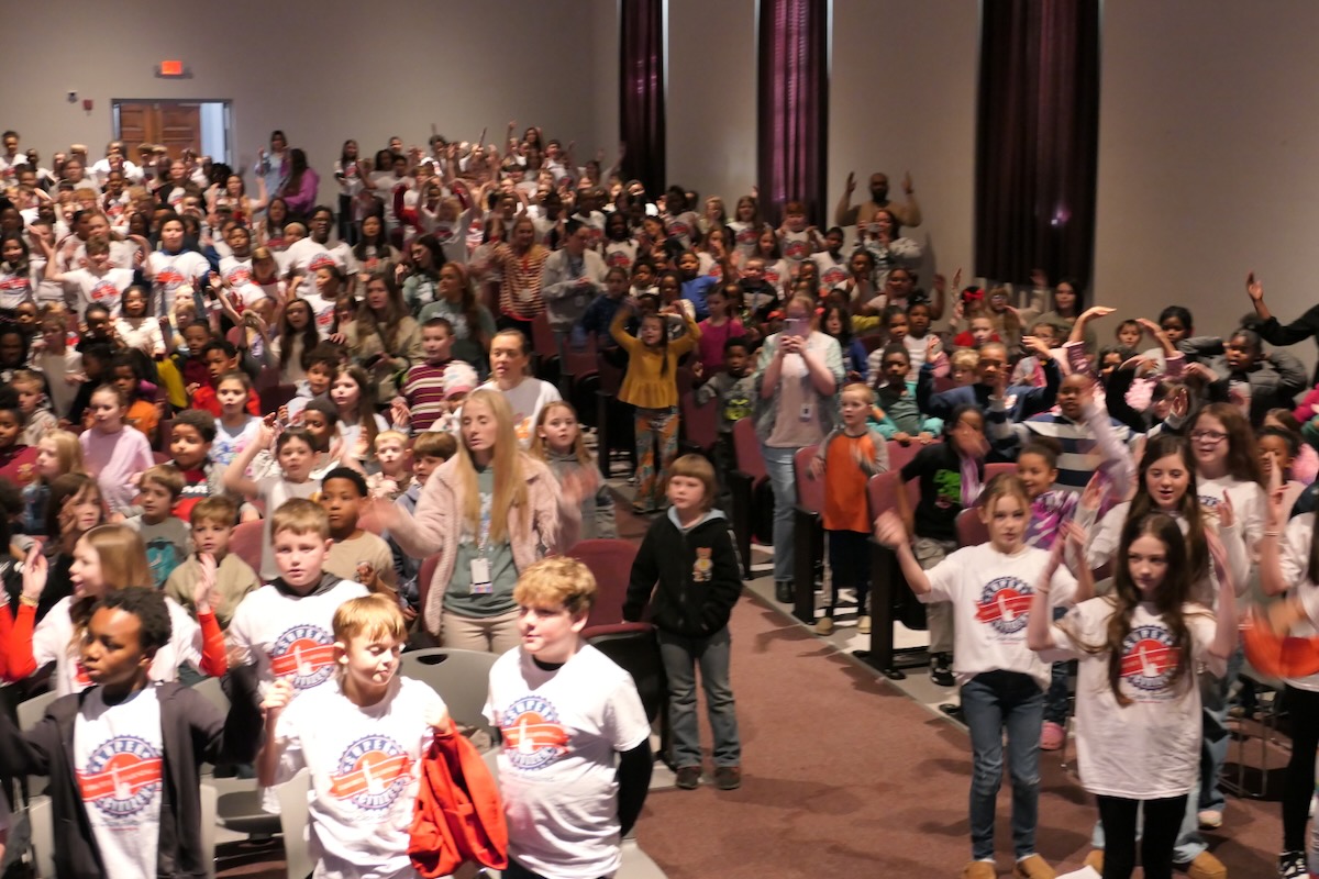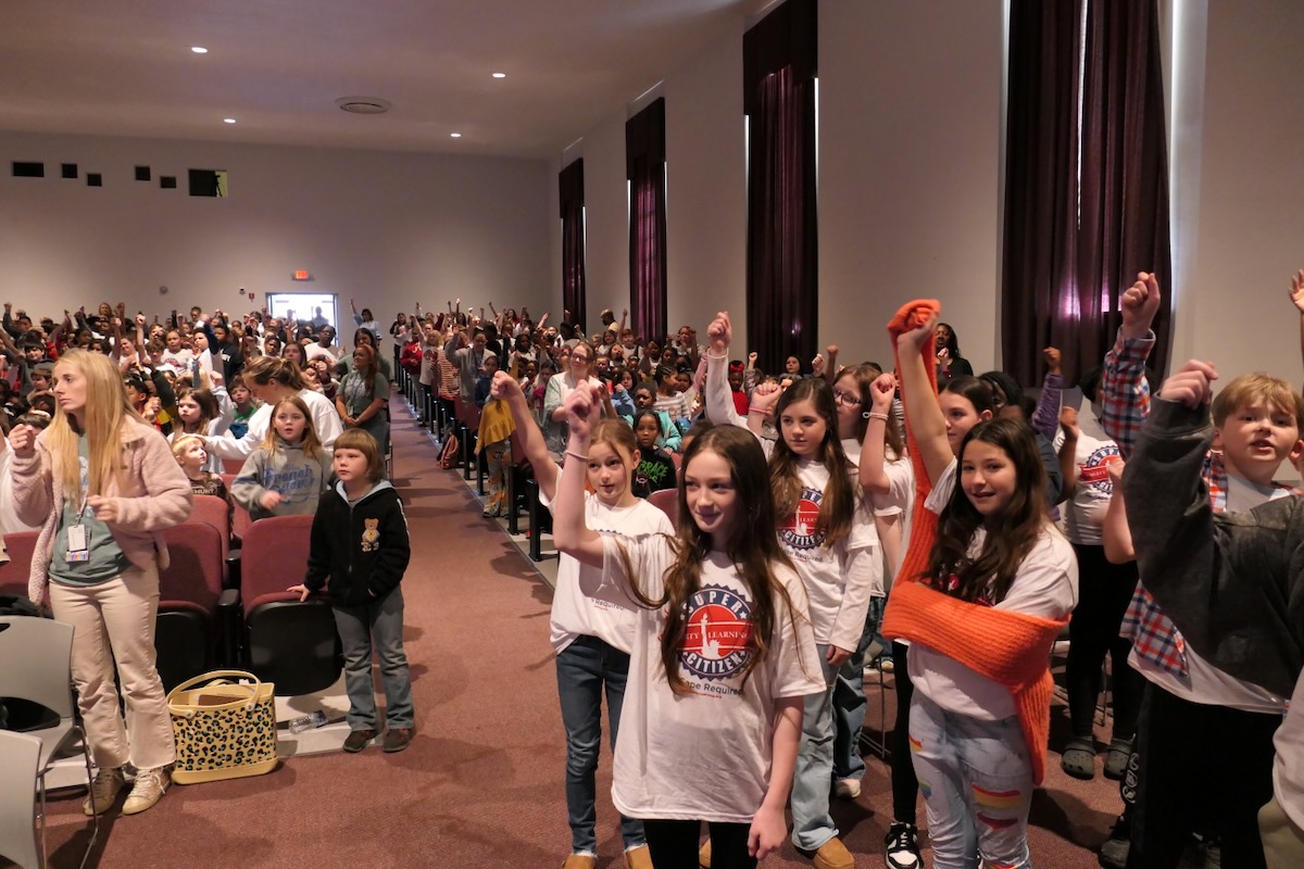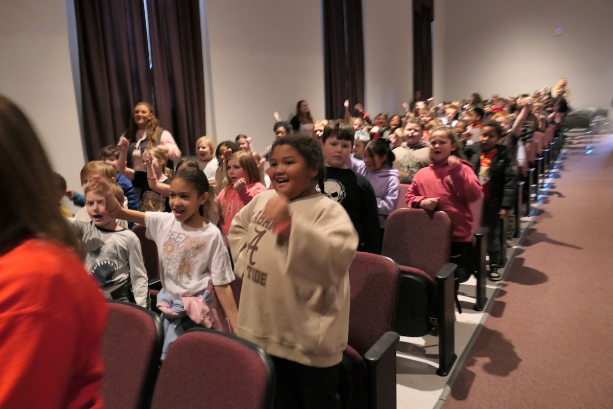 Today, 2nd & 5th graders from Lincoln Elementary, Munford Elementary, & Stemley Road Elementary filled the McFarlane Auditorium. After finishing 10 weeks in the Super Citizen Program, they are gathered to celebrate their accomplishments and honor local heroes from the stage.