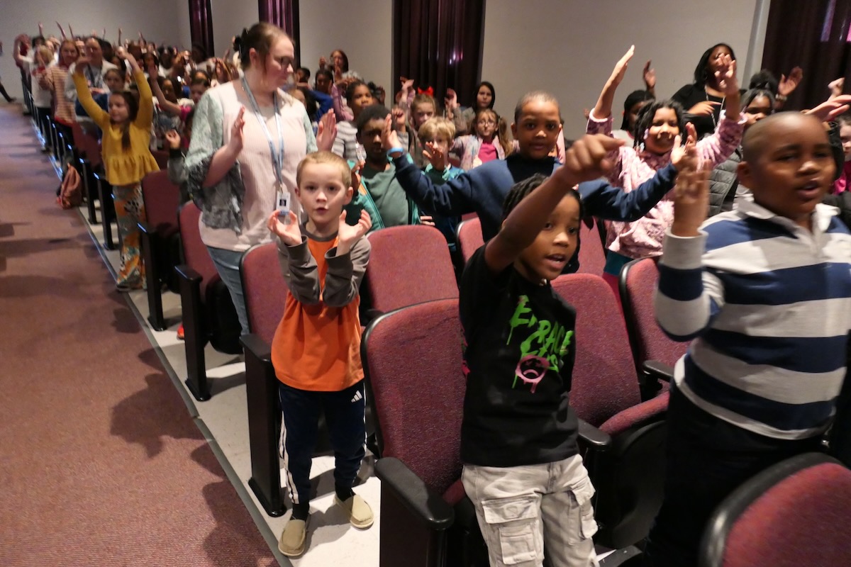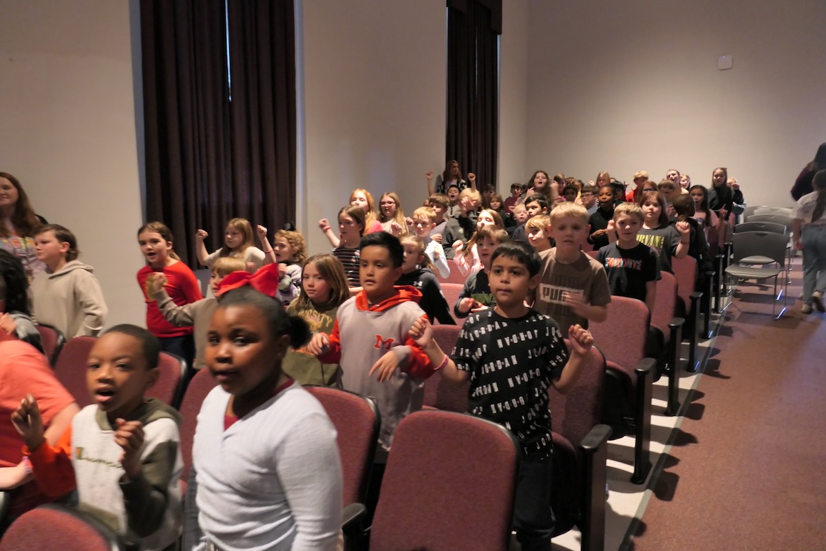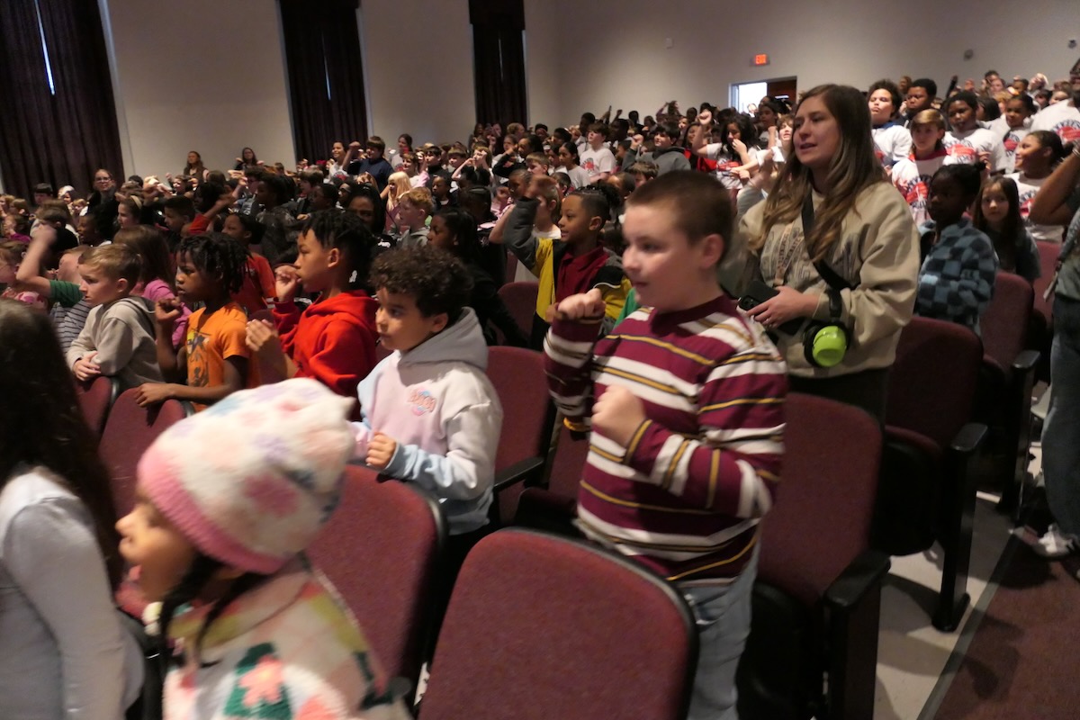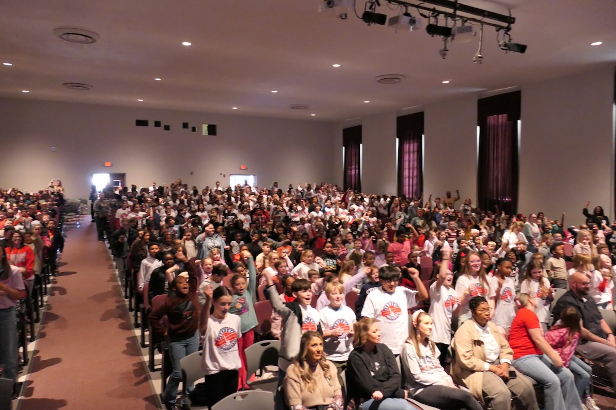 Today, 2nd & 5th graders from Lincoln Elementary, Munford Elementary, & Stemley Road Elementary filled the McFarlane Auditorium. After finishing 10 weeks in the Super Citizen Program, they are gathered to celebrate their accomplishments and honor local heroes from the stage.