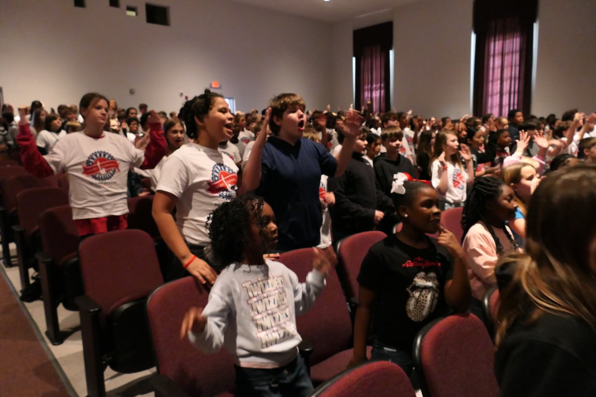 - The students filled the room with their voices as they sang “YOU in the USA.”