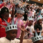 The lady in green brought history to life and introduced students to the 10-week civic, character, financial literacy and social studies program they will begin when her tour rolls away. She told them that they already have the most important title in the world: “CITIZEN.”