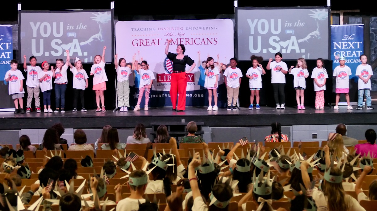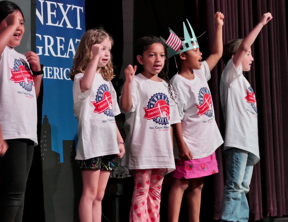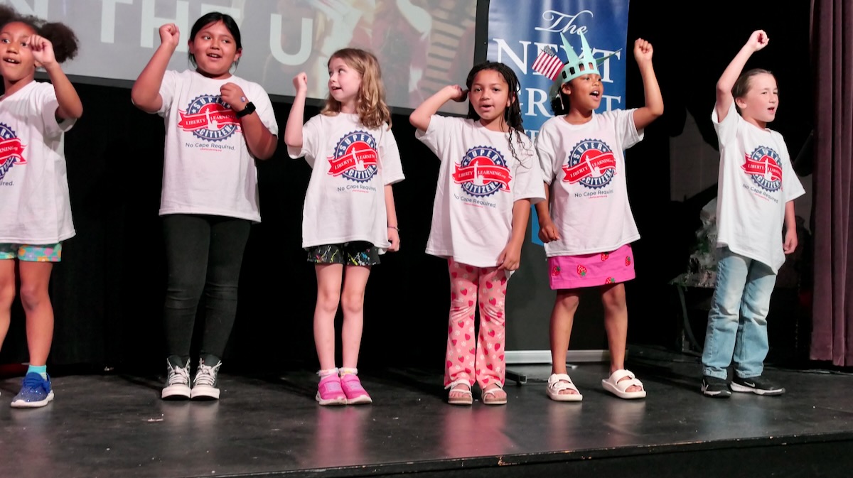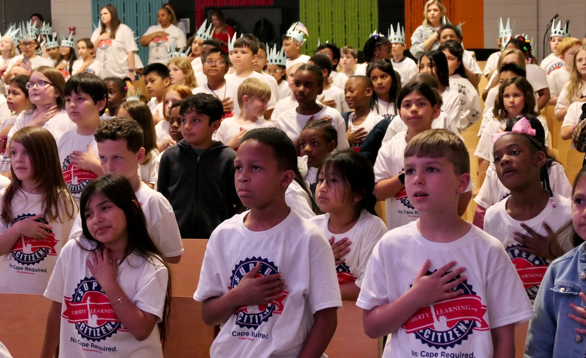 Students chose heroes who embodied the traits of amazing citizens and read essays from stage before presenting them with Liberty Pins. They learned that “when you honor a hero, you become a hero!”