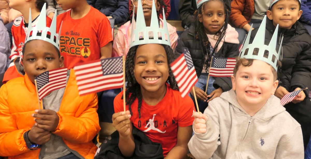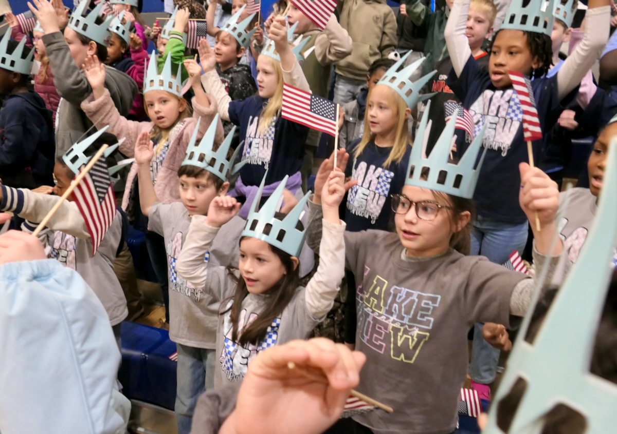 After class photos with Libby, students and teachers return to classrooms energized to learn crucial, all-American lessons. They’ll also begin the process of nominating and honoring “Helping Hands Heroes” who they will honor at their graduation celebration when the program is complete for this year.