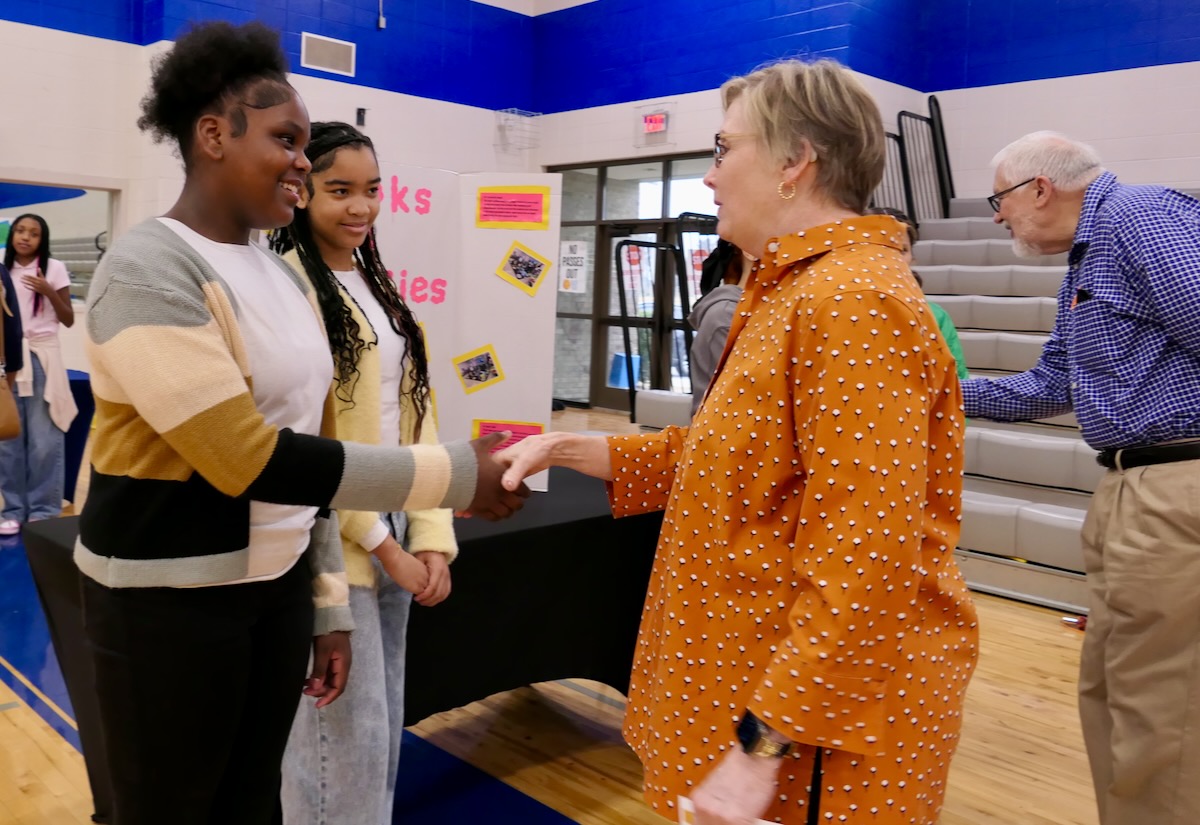 Speaking from their booths, students shared how they formed groups, identified problems, worked with local mentors and began taking action. In addition to civics and character learned in the program’s curriculum, they gained real-world practice in collaboration, service, empathy, compassion and communication.