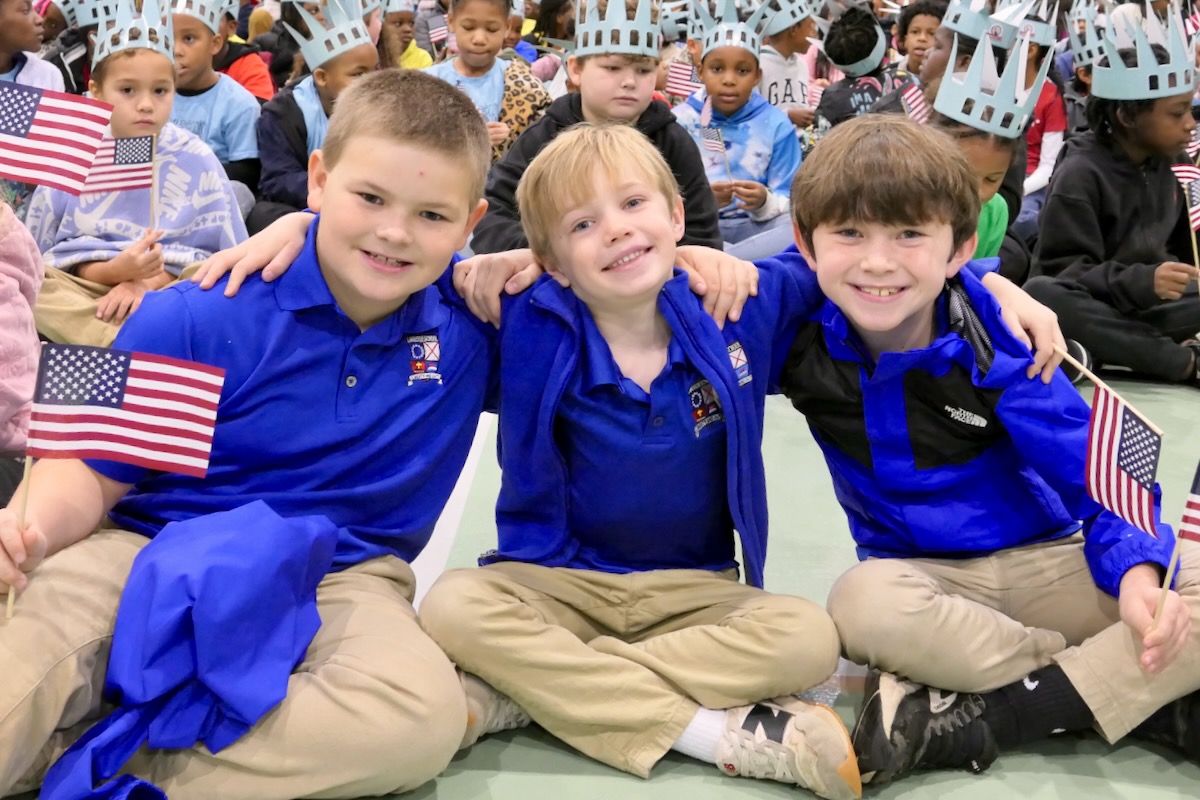 - Barrett, Addie-Rae, and Cameron lead everyone in the Pledge of Allegiance.
